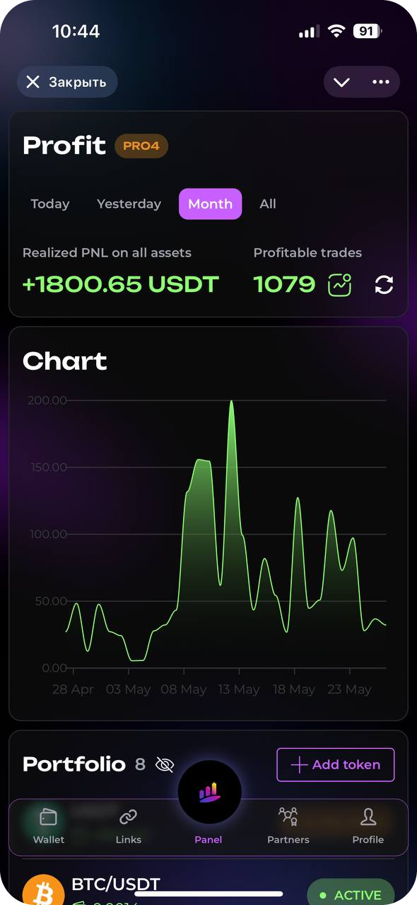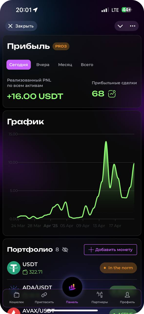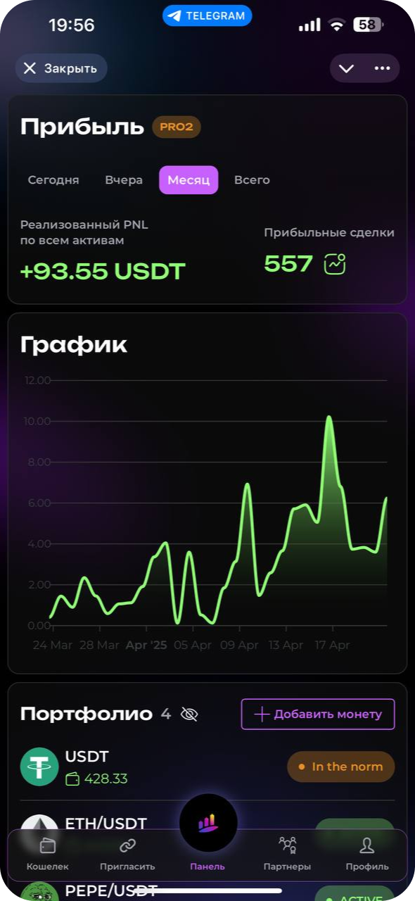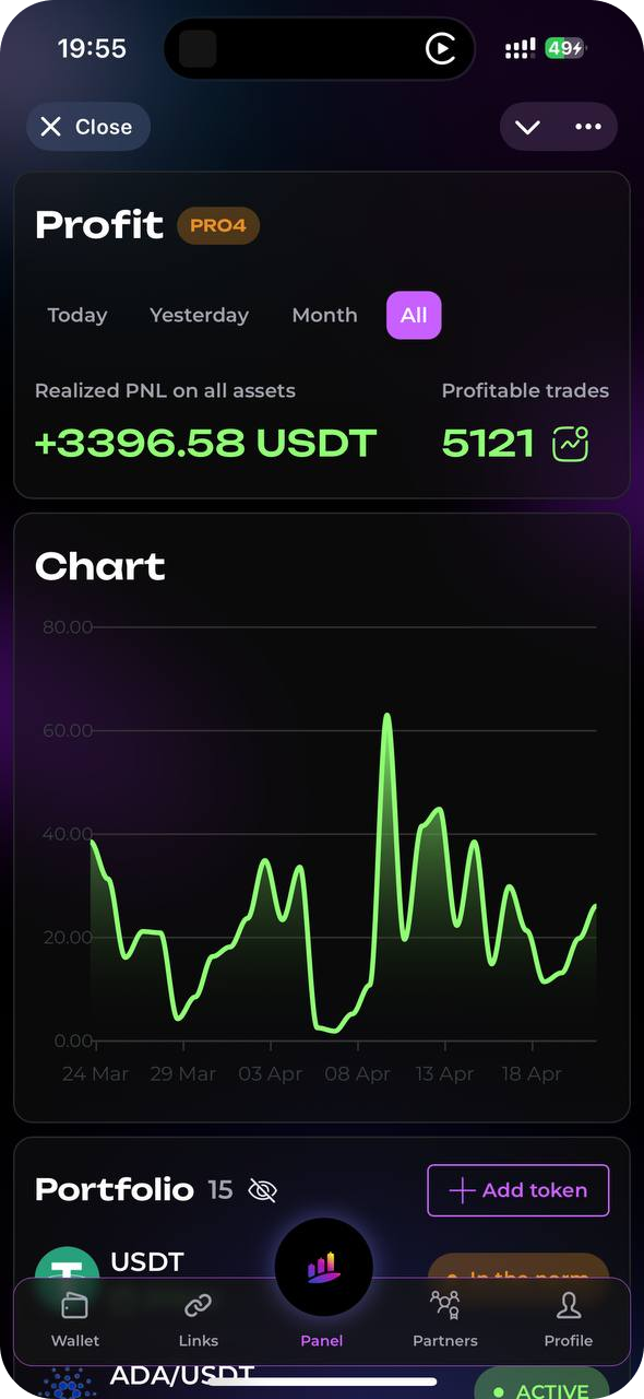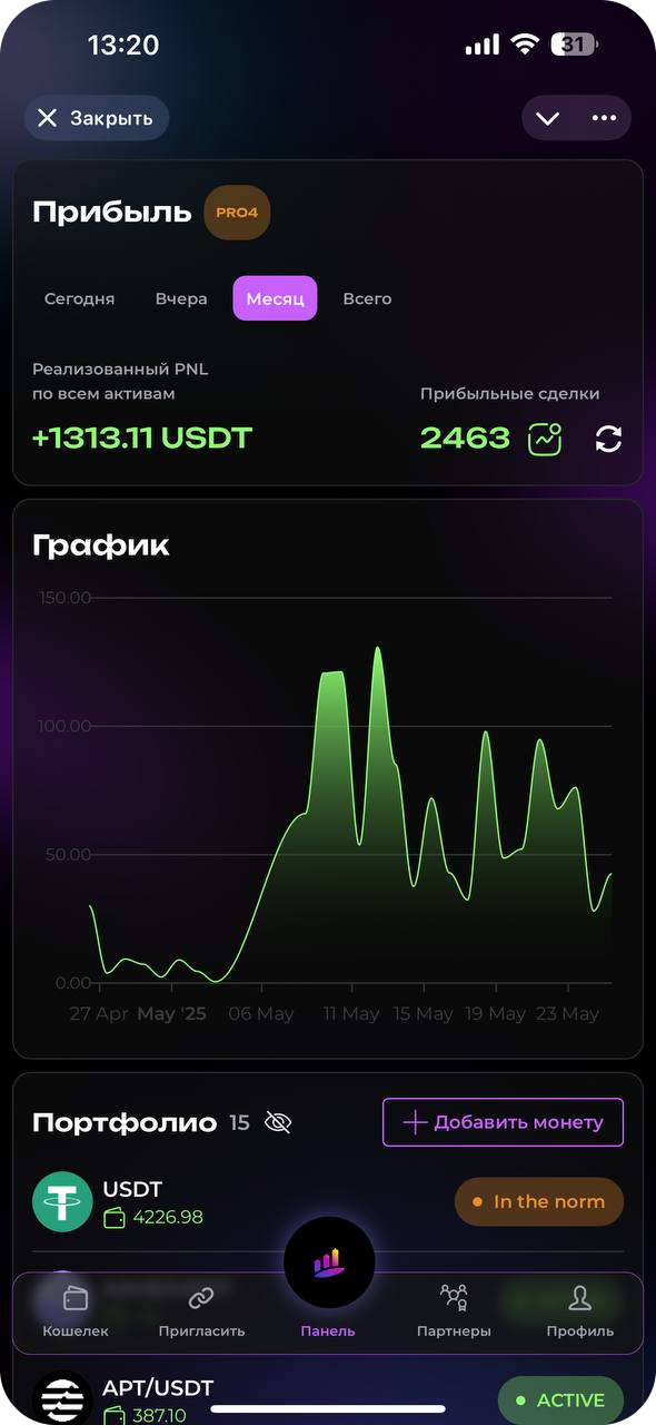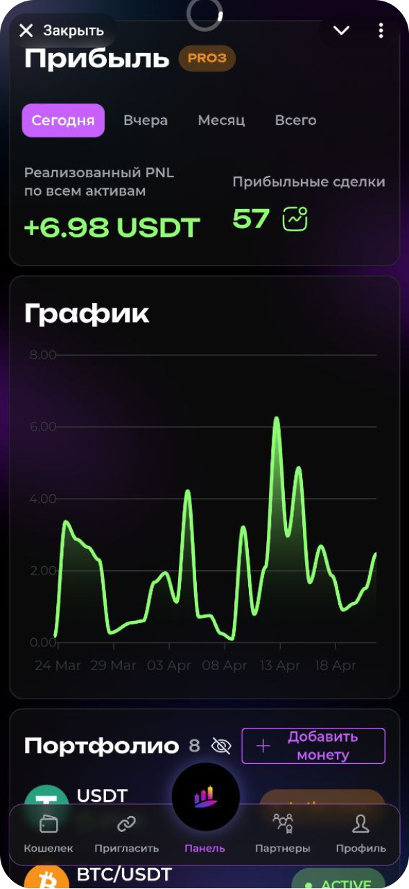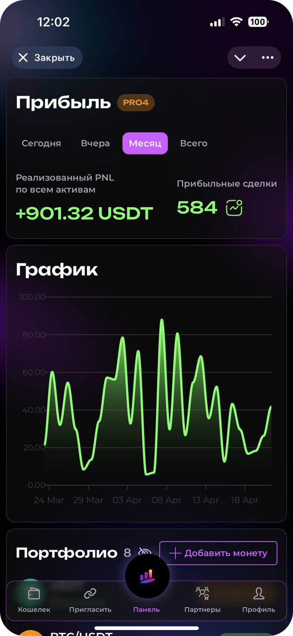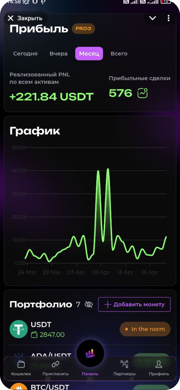 Surf Capital сознательно выбирает спотовую торговлю как наиболее безопасный и прозрачный подход. Наш бот работает только с реальными активами, исключая риск ликвидации, при этом эффективно используя рыночную волатильность для генерации дохода. Это разумный баланс между прибыльностью и защитой ваших инвестиций.